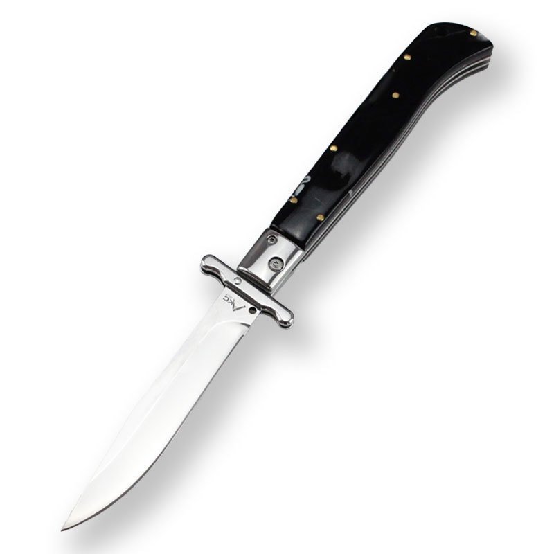 8,75 Zoll schwarzes italienisches Stiletto-Taschenmesser mit Schalter, schwarze Perle